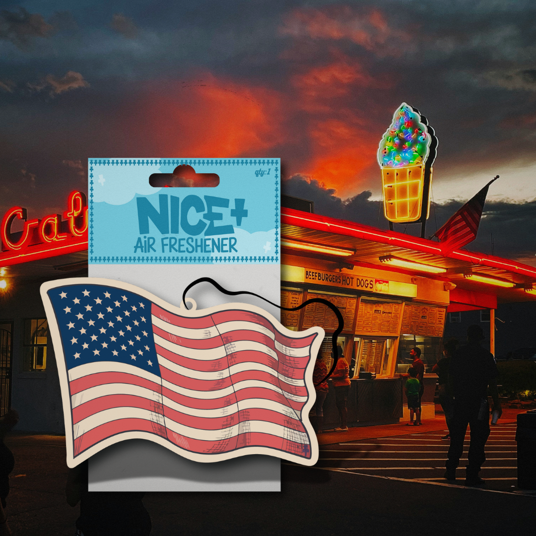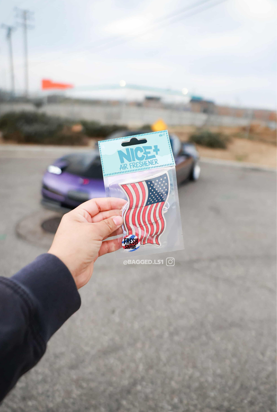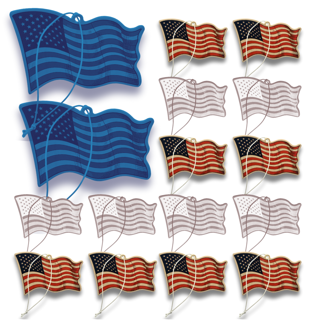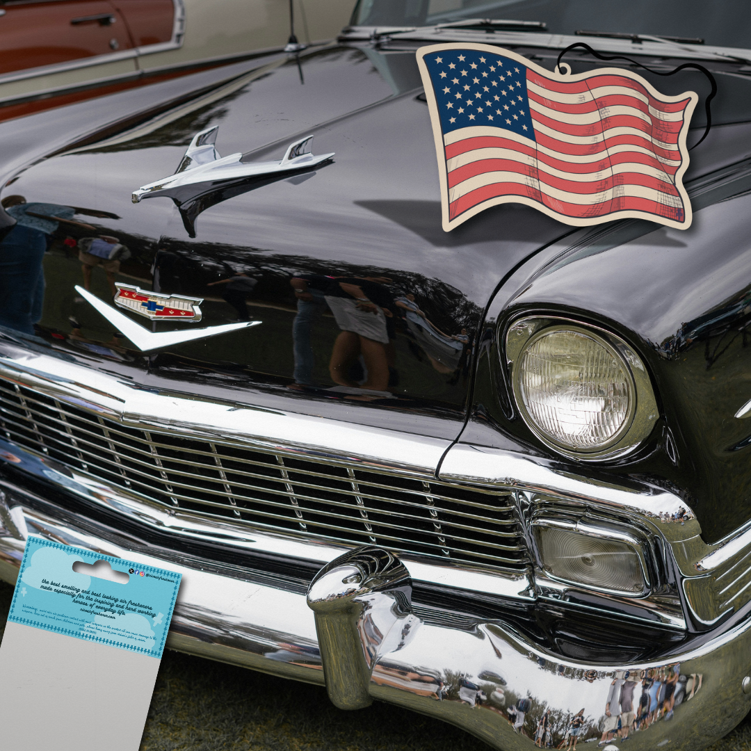 A durable American Flag air freshener featuring a clean, long-lasting fragrance and a design rooted in pride and respect.