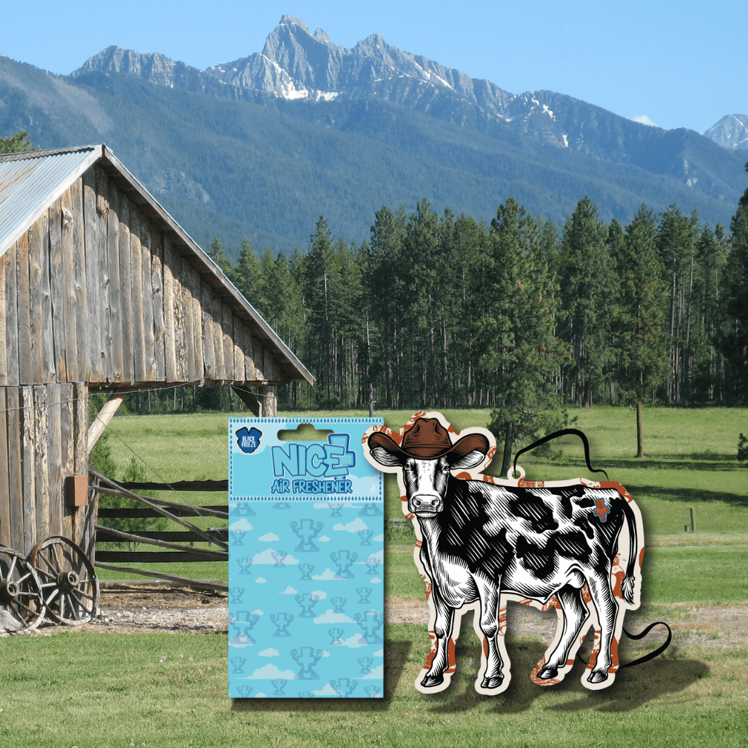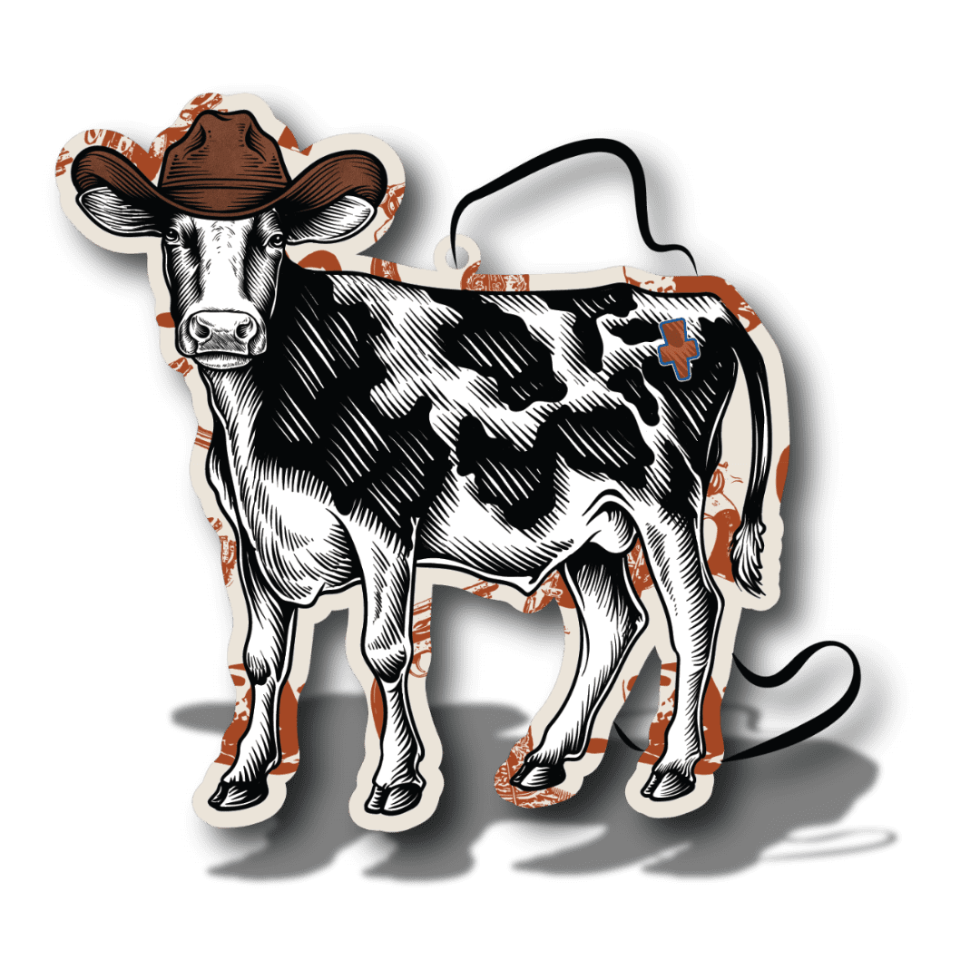 A cowpoke-themed air freshener that reflects independence, tradition, and a western approach to design.