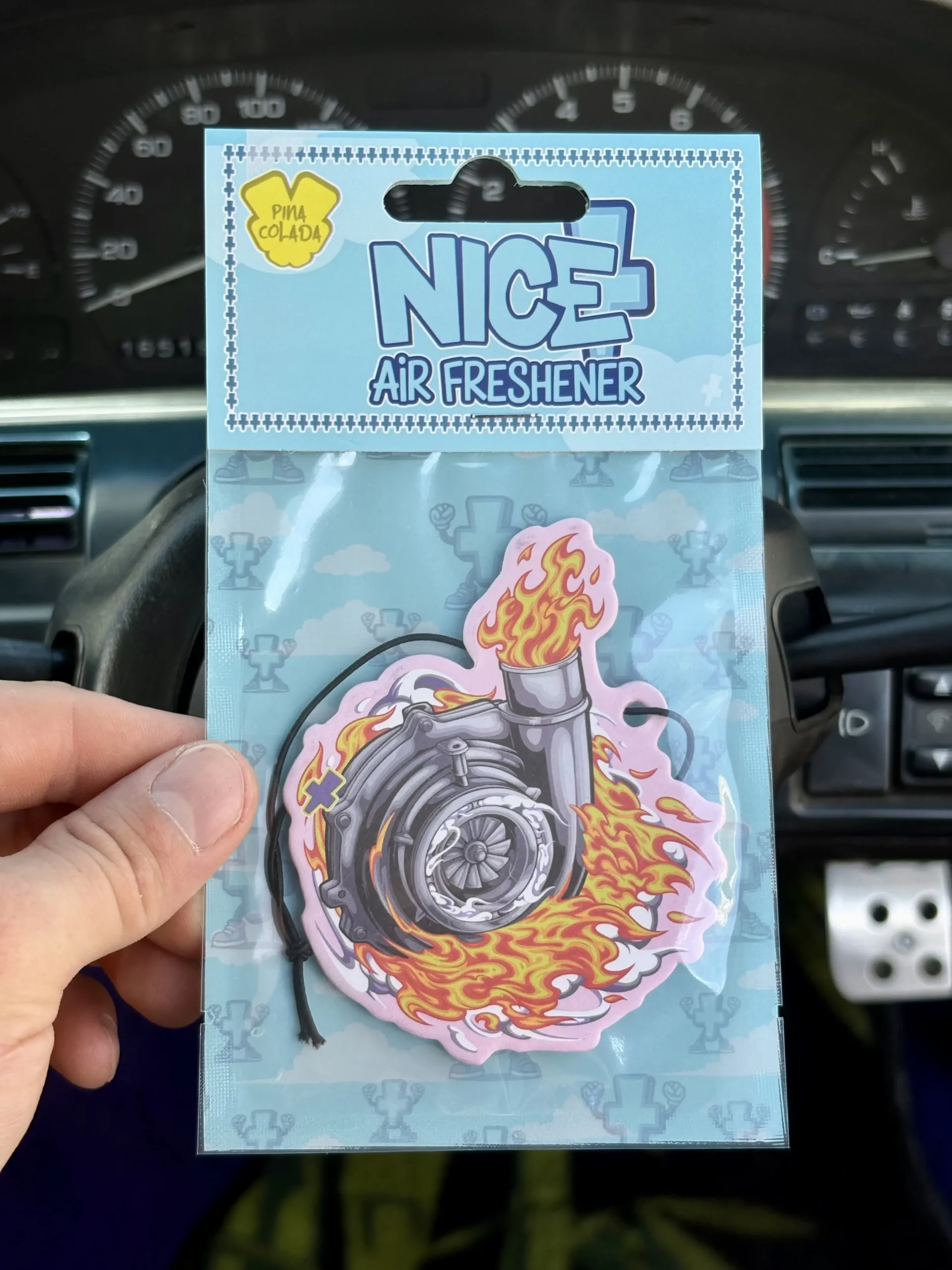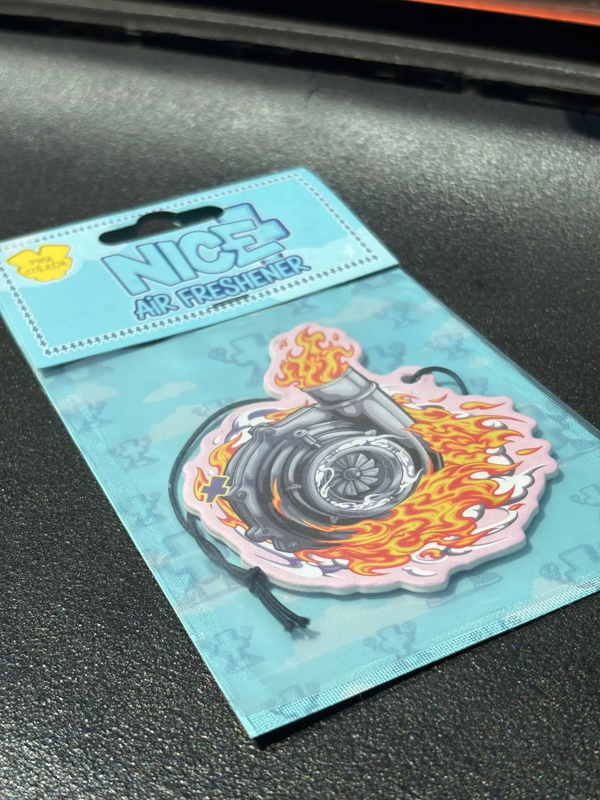 A turbocharger-inspired air freshener featuring a clean, long-lasting fragrance and a design rooted in performance and precision.